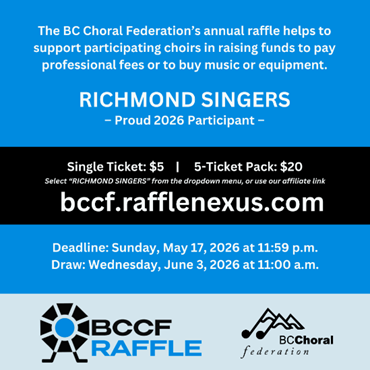 ![]() | The Richmond Singers Ensemble has missed singing for our audiences during Covid restrictions. It is with great pleasure that we present our recently completed "sing-a-long" video. It is well documented that singing is good for your health and well-being. We hope you enjoy "singing along" with us! |